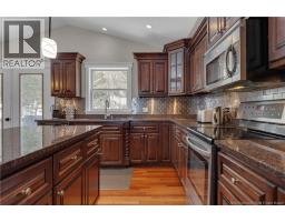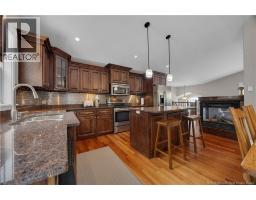 Beautiful large split-entry home in Meadowland Estates, Quispamsis. This spacious property is conveniently located close to the QPlex and the arterial road, offering quick access to the highway. The main level features a large semi-open concept kitchen, dining, and living area, highlighted by a stunning three-way propane fireplace. Beautiful mahogany cabinets with granite countertops add warmth and elegance to the kitchen. The oversized primary bedroom includes a walk-in closet and a private ensuite. Two additional generously sized bedrooms and main-floor laundry complete this level. Gorgeous hardwood floors run throughout the main floor. The lower level offers a large L-shaped family room, two additional bedrooms, and a full bathroom - perfect for a growing family or guests. Enjoy the private back deck just off the kitchen, ideal for relaxing or entertaining. The home also features a large double-car garage and is ready to welcome it's next family! (id:41243)