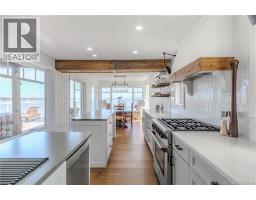 Welcome to an elevated coastal escape just 15 minutes from the city, where refined design meets the beauty of the Bay of Fundy. This impeccably renovated oceanfront residence offers over 200 feet of private shoreline and uninterrupted panoramic views, creating a setting that feels completely private and hard to replicate. The main level features a seamless open concept layout anchored by a stunning custom kitchen with quartz countertops, a 36 inch propane range, and beautifully crafted wood cabinetry, complemented by a spacious butlers pantry. The dining area and warm, refined living space with a woodstove insert are perfectly positioned to take in the ever changing ocean views. Two well appointed bedrooms and a full bath complete this level. Upstairs, the primary suite is a true retreat, offering a private balcony overlooking the water, a spa inspired ensuite, and a large walk in closet. The walkout lower level is designed for both relaxation and entertaining, featuring a home theatre, a fully equipped one bedroom guest or in law suite with kitchenette, an additional full bathroom, and a private enclosed hot tub room. Outdoors, the landscaped grounds lead to your own beach access, while the oversized detached garage offers excellent space for vehicles, storage, or a workshop. Thoughtfully curated with high end finishes and energy efficient systems throughout, 396 Point Road is a rare oceanfront offering in a truly special setting. (id:41243)