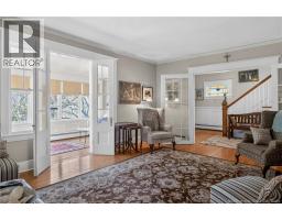 Located midway up the Green Road, this iconic two-storey home embodies the ultimate Rothesay lifestyle! Gracious and charming, this vintage home features 9 foot ceilings, crown mouldings, numerous unique built-in cabinets, bookcases & wainscotting, multiple French doors, 2 fireplaces, original stained glass, a stunning staircase, expansive rooms & an abundance of windows. In the mid-1980s, the current owners added a two-storey extension, introducing a spacious Family Room & a Primary Bedroom up. The property also boasts an oversized double garage with loft. The home is set on an absolutely gorgeous, oversized lot with mature trees & gardens, flagstone pathways, 2 decorative ponds and a stone patio. The backyard offers plenty of grassy space perfect for childrens play. The wraparound verandah leads to the front door, opening into a gracious foyer with French doors revealing an expansive Living Room with a dark oak fireplace and bay window. The Dining Room features charming built-in corner cabinets. Evenings can be enjoyed on the verandah, while sunny winter afternoons are perfect in the delightful Sunroom. The Family Room showcases a raised hearth wood-burning fireplace & garden doors provide access to the stone patio & gardens. A sweet country kitchen with large island & a half bath complete the main level. Upstairs are 4 well-sized bedrooms. The Primary Bedroom offers a walk-in closet with great potential for an ensuite bath. The 2nd bedroom opens onto a roof deck, while the 3rd bedroom features a charming window seat. The 4th bedroom is equally delightful. The main Bathroom includes a large walk-in shower and separate claw foot tub. A staircase leads to the attic with loads of potential. This lovely home is perfectly situated just up the road from East Riverside Kingshurst Park and the nearby Riverside Golf and Country Club. It has been cherished and owned by the same family for 50 years, reflecting its endearing appeal and amazing family-friendly features! (id:41243)